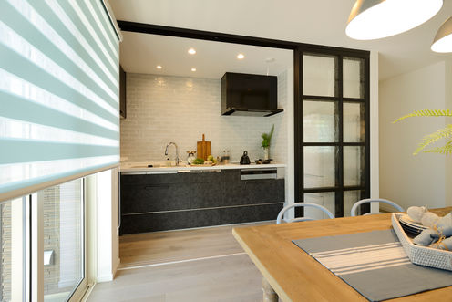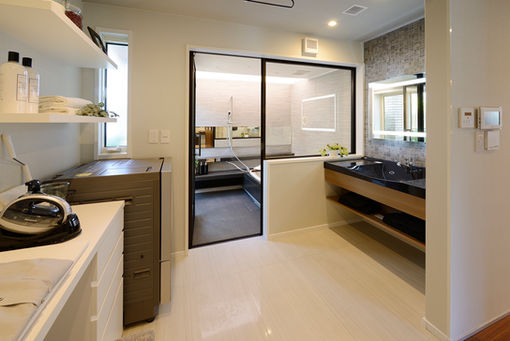 吹き抜けのある3階建モデルルームの内装設計、インテリアデザインです。それぞれのフロアにテーマを設け、内装から造作特注家具のデザイン、照明計画からディスプレイの小物まで全てを行います。